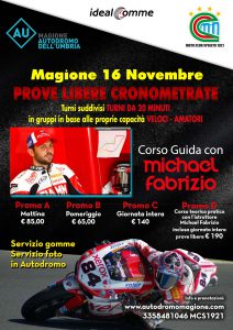 Il 16 novembre, nel corso delle sessioni libere cronometrate per moto, ci sarà la possibilità di partecipare ad un corso di guida con il pilota motociclistico Michael Fabrizio, protagonista di […]